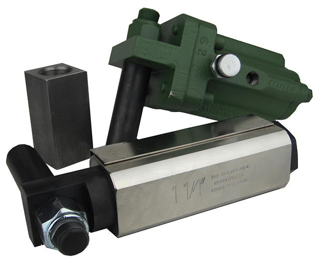 The Cleveland Vibrator Co. lines of industrial vibrators and material flow aids feature a wide range of force ranges, construction types in air-powered (pneumatic) piston vibrators, hammers, knockers and rappers, turbine and ball vibrators; or electric styles of rotary electric vibrator motors and electromagnetic linear vibrators; for handling material flow challenges from a few pounds to over 100 tons in bins, hoppers, railcars, trucks, chutes, feeders, filters, screeners, packers, parts tracks and more.